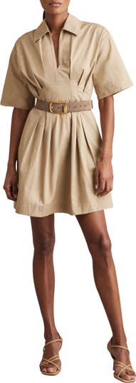Bold pleats create a fit-and-flare silhouette that softens the utilitarian vibe of this cotton minidress.