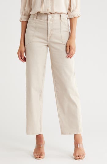 Front ties amplify the casual vibe of straight-leg jeans cut from comfortable stretch denim in a perfectly ivory wash.