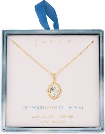 An image of the blessed mother glows in a halo of pavé cubic zirconia on this pendant necklace that will let your faith shine.