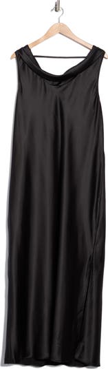A drapey cowl neckline lends on-trend appeal to an ankle-grazing maxi dress cut from soft satin that gives off liquid-like shine.