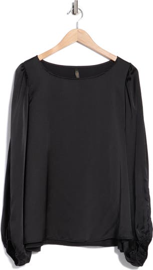 Perfect for a day or night out, this smooth satin top is fashioned with slit balloon sleeves for instant drama.