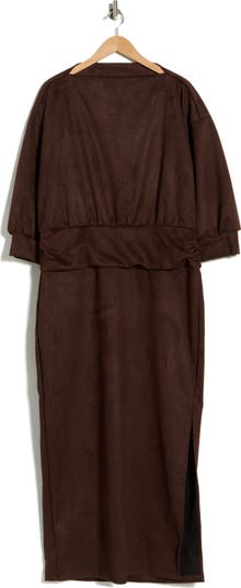 Supple faux-suede fabrication brings a soft feel and sophisticated look to a maxi dress designed to turn up the style points of your casual or elevated looks.