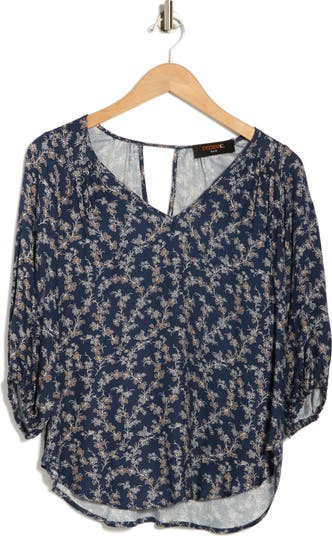 Breeze through your day in this flowy top framed by an airy back keyhole and billowy three-quarter sleeves.
