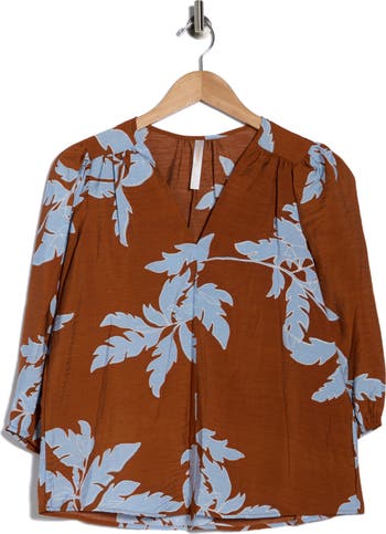 A bold floral print brings sunny-day vibes to this lightweight top framed by puffed balloon sleeves.