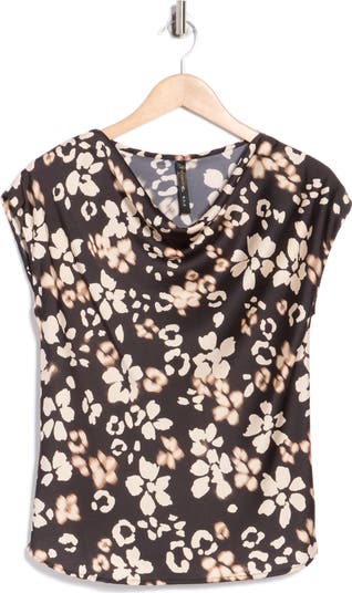 A drapey cowl neck and cap sleeves frame this smooth satin top that's perfect for a day or night out.