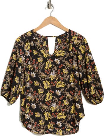 Elevate your casual attire with this lightweight woven top covered in a unique floral print and finished with a back keyhole for a bit of flirt.