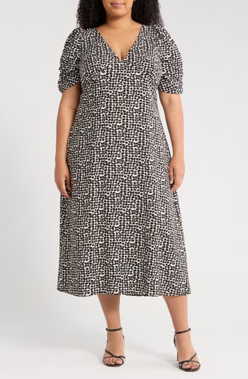 A back smocked waist gives shape to this loose-fitting midi dress that is designed with elbow-length sleeves and covered in ditsy blooms.