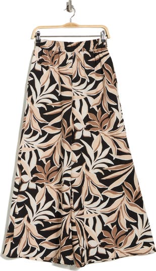 A leaf print makes a retro-chic statement on these wide-leg pants topped with a comfortable elastic waist.