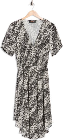 A ditsy floral print enhances the charm of this lightweight midi dress framed by an Empire waist and gently puffed sleeves.