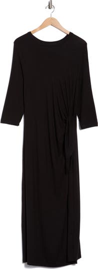 A side knot creates a unique gathered effect on an ankle-grazing maxi dress cut from soft and stretchy fabric for day-to-night comfort.