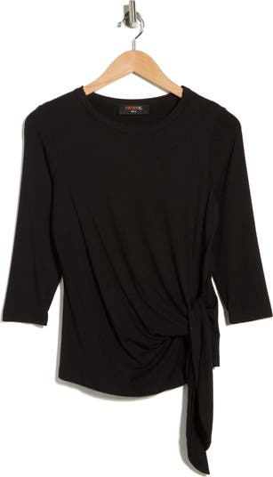 A side knot creates a unique gathered effect at the front of a soft and stretchy top that's a perfect style refresh to your everyday selection.