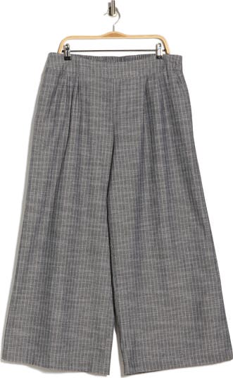 A cotton-and-linen construction offers all-day breathability to these flowy, wide-leg pants covered in pencil-thin stripes.