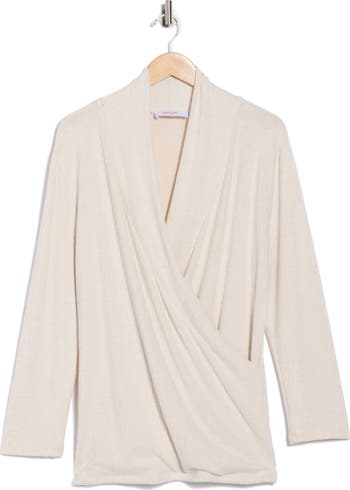 A drapey surplice V-neck frames this long-sleeve top made from a supersoft brushed knit for a cozy feel.