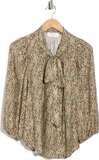 Polished yet playful, this lightweight top features a large bow tied at the neck and billowy long sleeves.