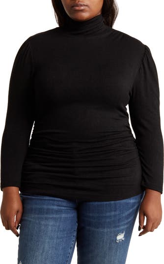 Get comfy in this long-sleeve top constructed from a soft brushed knit with a cozy turtleneck and side ruching.