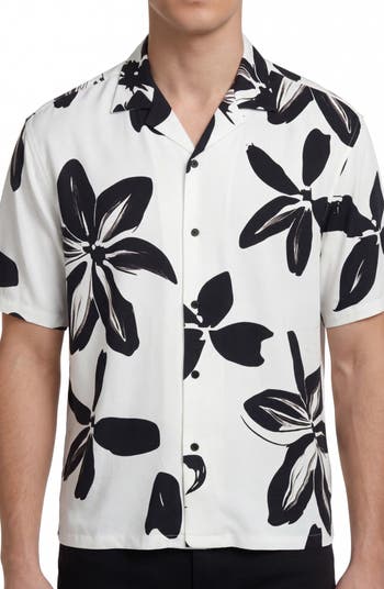 Made from lightweight fabric with an abstract design, this button-up camp shirt is ready for everything from laid-back weekends to your next getaway.