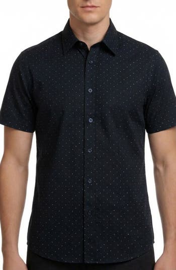 Made from four-way-stretch fabric with a geometric print, this short-sleeve button-up shirt is ready for everything from desk duties to weekend plans.