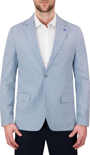 A soft blend of cotton and linen in a herringbone pattern furthers the relaxed versatility of a sport coat tailored with rounded shoulders and a softly fitted waist. The full lining and lightweight feel make it an ideal choice for semiformal and warm-weather occasions.