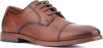 Evoke polished style in this timeless cap-toe derby constructed from smooth faux leather with clean stitching and a flexible sole.