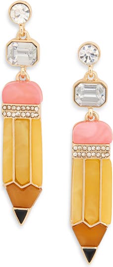 Sparkly crystals bring a glam touch to bold pencil drop earrings that take your back-to-school style to the next level.