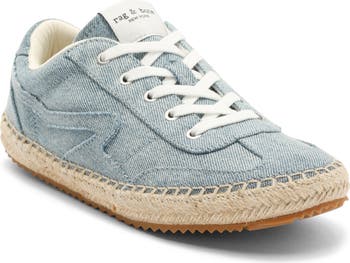 A jute-wrapped midsole underscores the espadrille inspiration of this low-profile sneaker done with a cool denim upper.