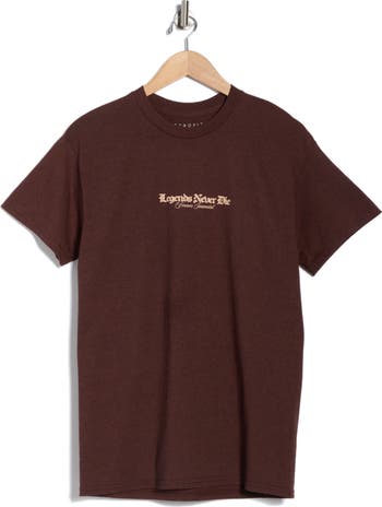 Vintage script brings throwback appeal to a graphic T-shirt cut from a breathable cotton blend.