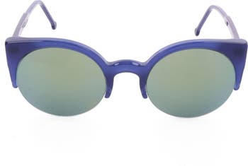 Boasting retro attitude, these half-rim sunglasses are shaped in a cat-eye silhouette and fitted with tinted lenses.