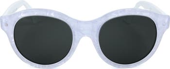 A sweet silhouette elevates stylish Italian sunglasses fitted with inky lenses that block the sun's glare.