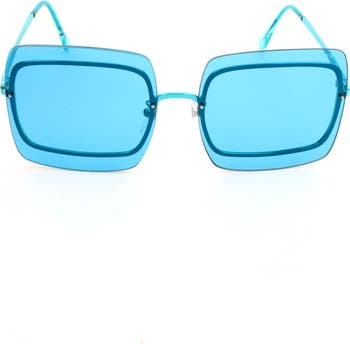 These statement sunglasses channel '90s style with their rimless square silhouette and brightly tinted lenses.