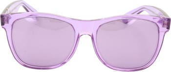 Bring a pop of color to your sunny-day looks with these purple square sunglasses fashioned with translucent frames.