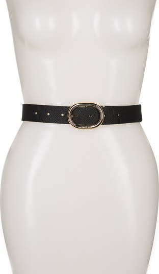 - - Pin closure - Reversible solid/logo print - Leather construction - 7 holes for adjustable sizing - Approx. 1.25" width - Imported