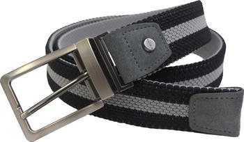 Get two looks in one with this reversible stretch-woven belt featuring both a solid side and a striped one.