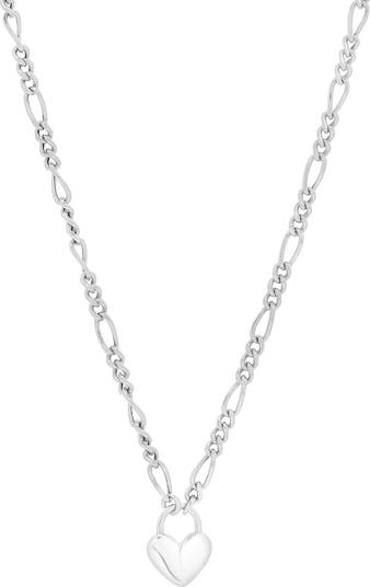 Rhodium Plated Sterling Silver Figaro Chain Heart Pendant Necklace