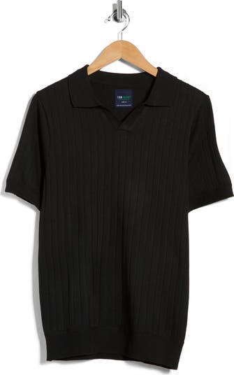 Allover ribbing adds texture to this soft sweater updated with abbreviated sleeves and a polished collar.