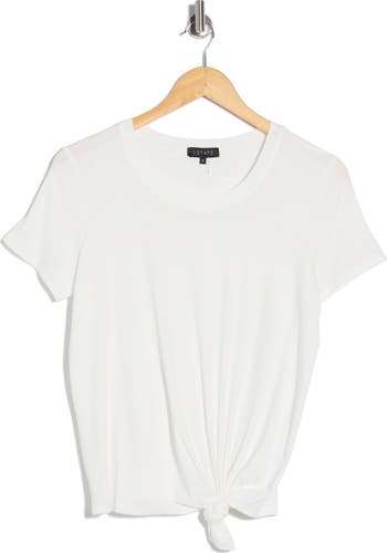 A tie at the hem shapes the silhouette of this comfortable ribbed T-shirt that's a cool addition to your off-duty look.