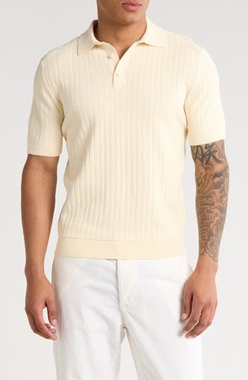 Fine yarns and wide ribbing elevate an all-cotton sweater styled like a polo and designed to turn any warm-weather outfit into a smart, event-ready look.