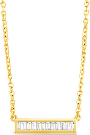 Baguette-cut cubic zirconia sparkle from a dainty bar pendant necklace that's perfect to layer or wear solo for just-right shine.