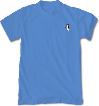 A penguin graphic energizes a casual-cool crewneck T-shirt cut from supersoft, pure cotton.