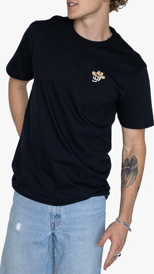A friendly cowboy skull graphic fronts this American-made T-shirt crafted from soft, pure cotton.