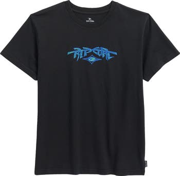 Gnarly surf graphics channel the Aussie brand's laid-back attitude on this kid-sized cotton T-shirt that's pigment-dyed and enzyme-washed for a sun-faded patina.