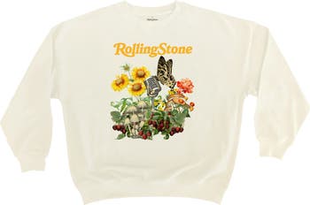 Made of a soft cotton blend, this crewneck pullover sweatshirt brings cozy comfort and standout style with a springtime-inspired Rolling Stone magazine graphic across the front.