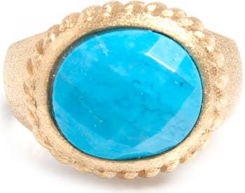A faceted magnesite stone centers a bezel satin ring made with 18k yellow gold plating.