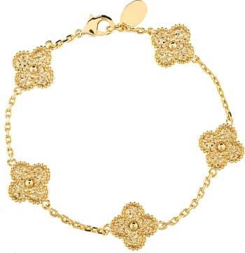 Artfully textured clover pendants catch the light on an elegant bracelet clad in polished 18-karat gold or white rhodium.