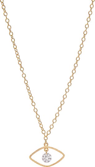 A single CZ stone dangles from a satin finish almond frame pendant to ward off bad vibes with chic style.