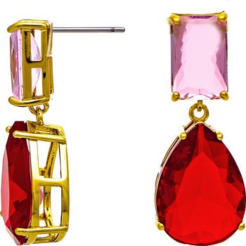 An assortment of colored cubic zirconia stones finesse these drop earrings, gleaming 18‑karat gold plating for radiant shine.