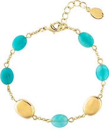 An assortment of polished pebble stones define a chain bracelet, gleaming 18‑karat gold plating for radiant shine.