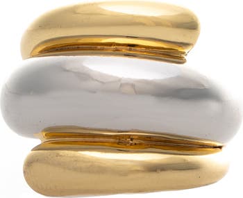 Curved lines and mixed-metallic finishes define a statement ring, gleaming 18‑karat gold plating for radiant shine.