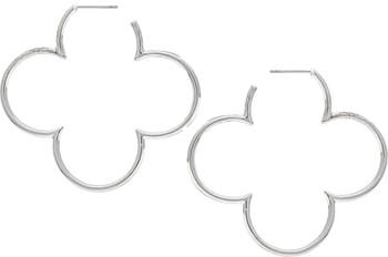 Show off elegant shine with these clover-shaped hoop earrings clad in polished white rhodium.