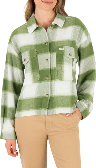 A boxy fit and shorter hem stylishly update a cozy flannel shirt cut from soft cotton and turned out in classic plaid.