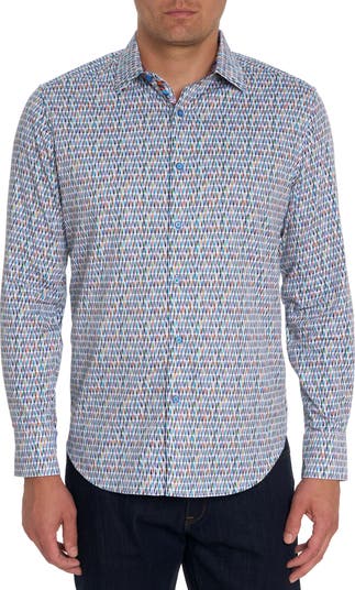 Boo-Yah Geo Print Stretch Cotton Button-Up Shirt
